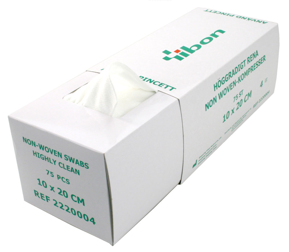 Kompress non-woven höggradigt ren i utdragbar box 4-lagers 30 g/m2 10x20cm / 75st